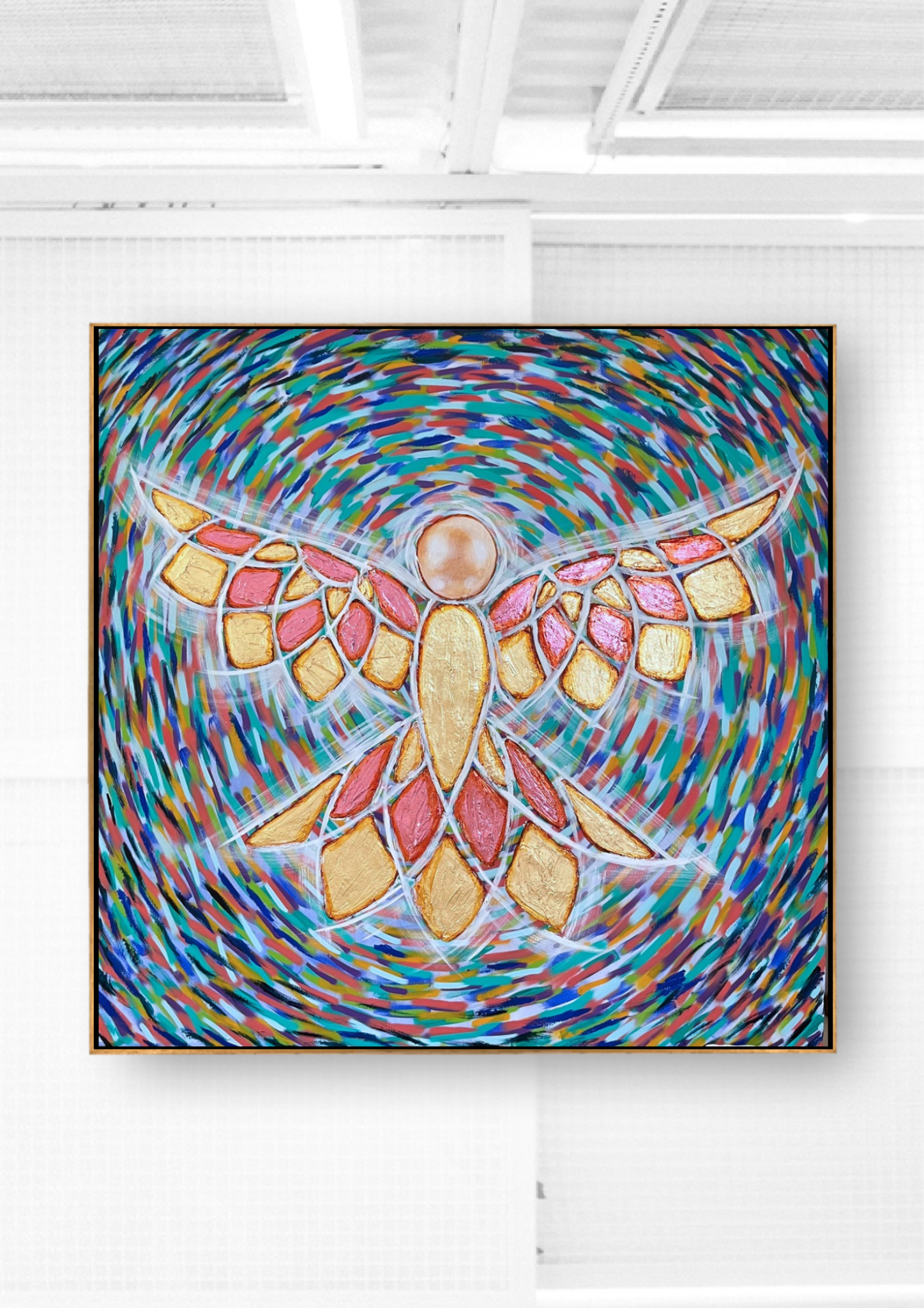 Pintura em tela com tinta acrílica em spray e folha de ouro em cor dourado e rosê
